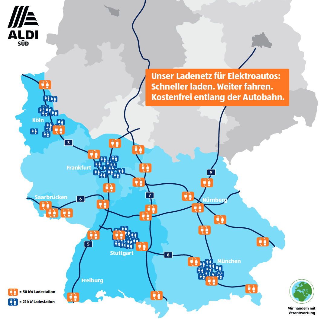 Aldi Süd Baut 28 Kostenlose Stromtankstellen An Autobahnen